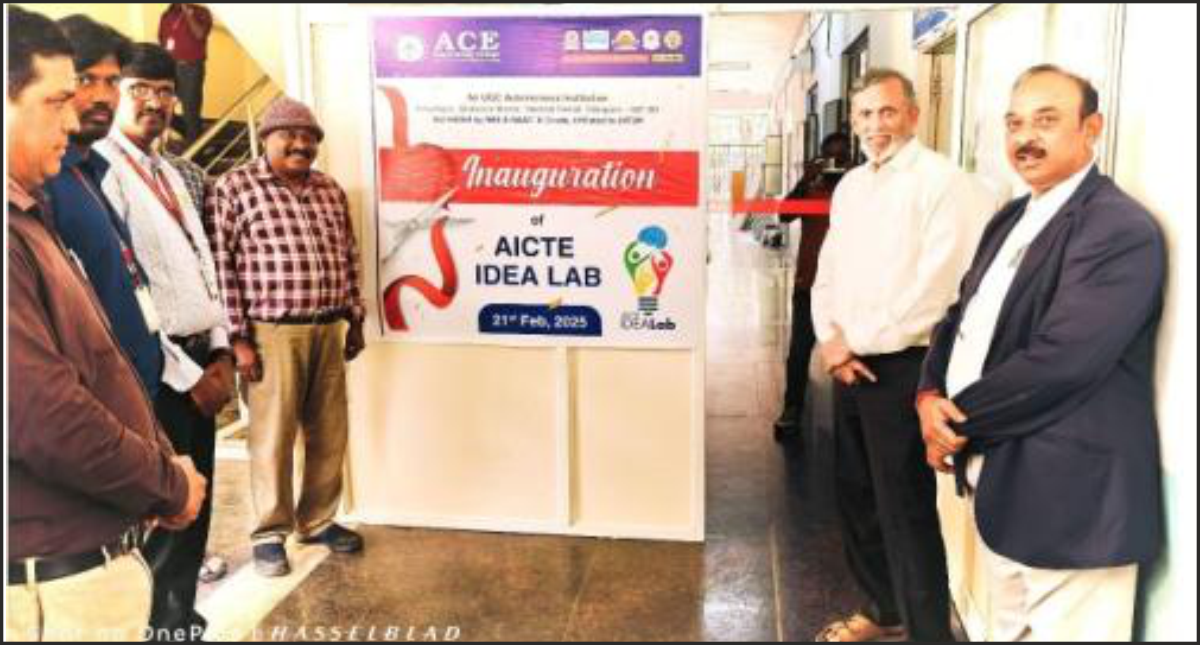 The AICTE IDEA Lab at ACE Engineering College was inaugurated on 21 February 2025. This milestone marks an important milestone for the college, likely contributing to enhancing innovation, research, and development opportunities for students and faculty. The IDEA Lab is expected to foster creativity and support students in developing new ideas and projects in various fields of engineering and technology.